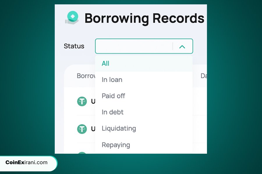• سابقه تنظیم وثیقه: این گزینه نشان می‌دهد که در گذشته چه تغییراتی در مقدار رمزارز وثیقه وام شما داده شده است.