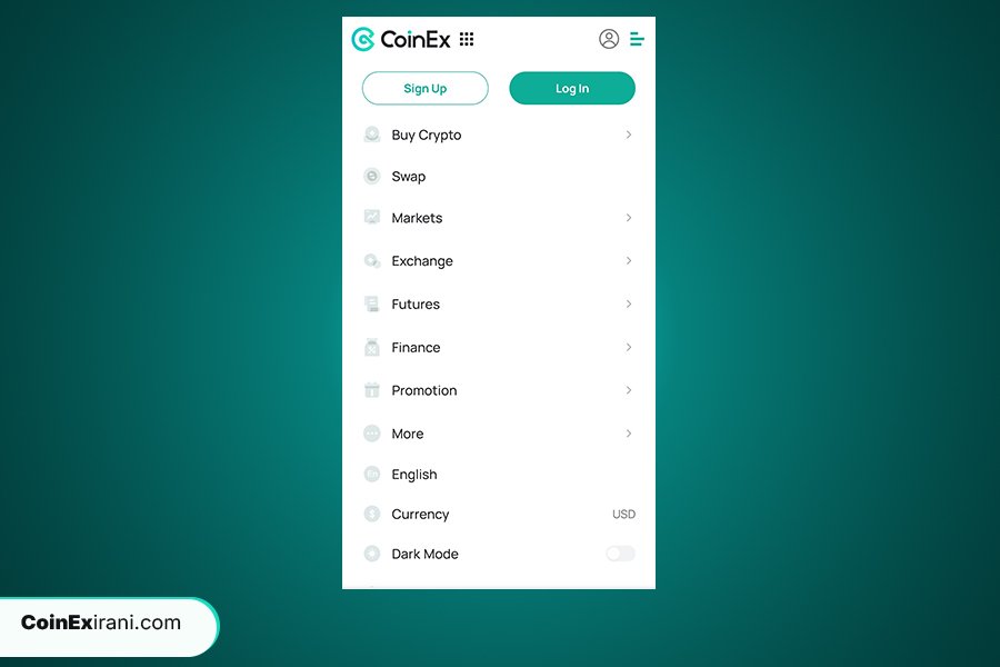 پس از ورود به اپلیکیشن کوینکس و باز کردن منوی اصلی (که معمولاً با آیکون سه خط افقی نمایش داده می‌شود)، با فهرستی از گزینه‌های مختلف روبرو خواهید شد. برای ایجاد یک حساب کاربری جدید و شروع به معامله، گزینه “ثبت‌نام” یا “Sign Up” را انتخاب کنید. این گزینه معمولاً در قسمت بالای یا پایین این فهرست قرار دارد. با کلیک بر روی این گزینه، به صفحه ثبت‌نام هدایت خواهید شد تا اطلاعات مورد نیاز را وارد کرده و فرآیند ایجاد حساب خود را تکمیل کنید.